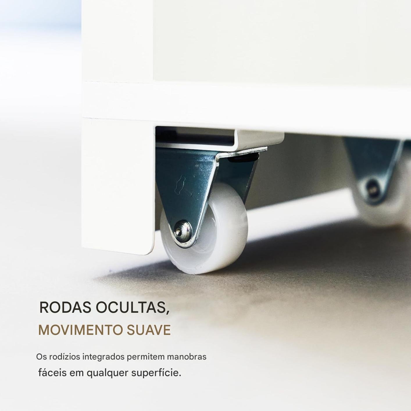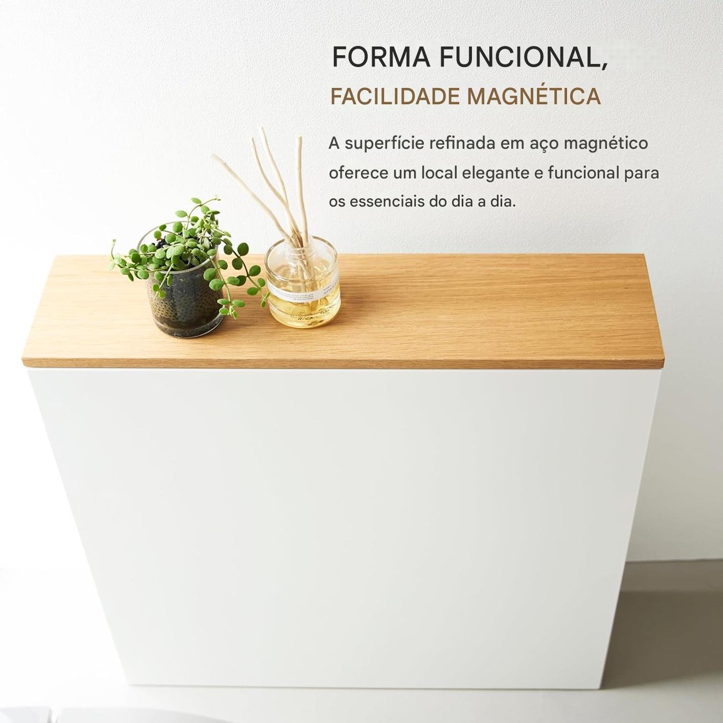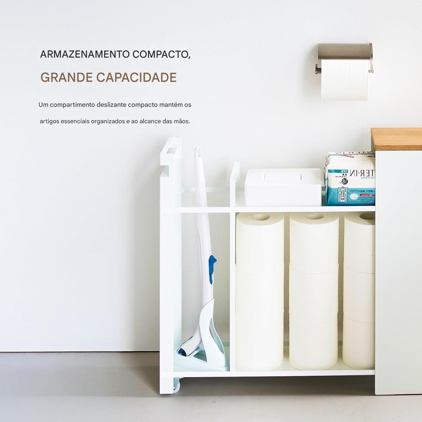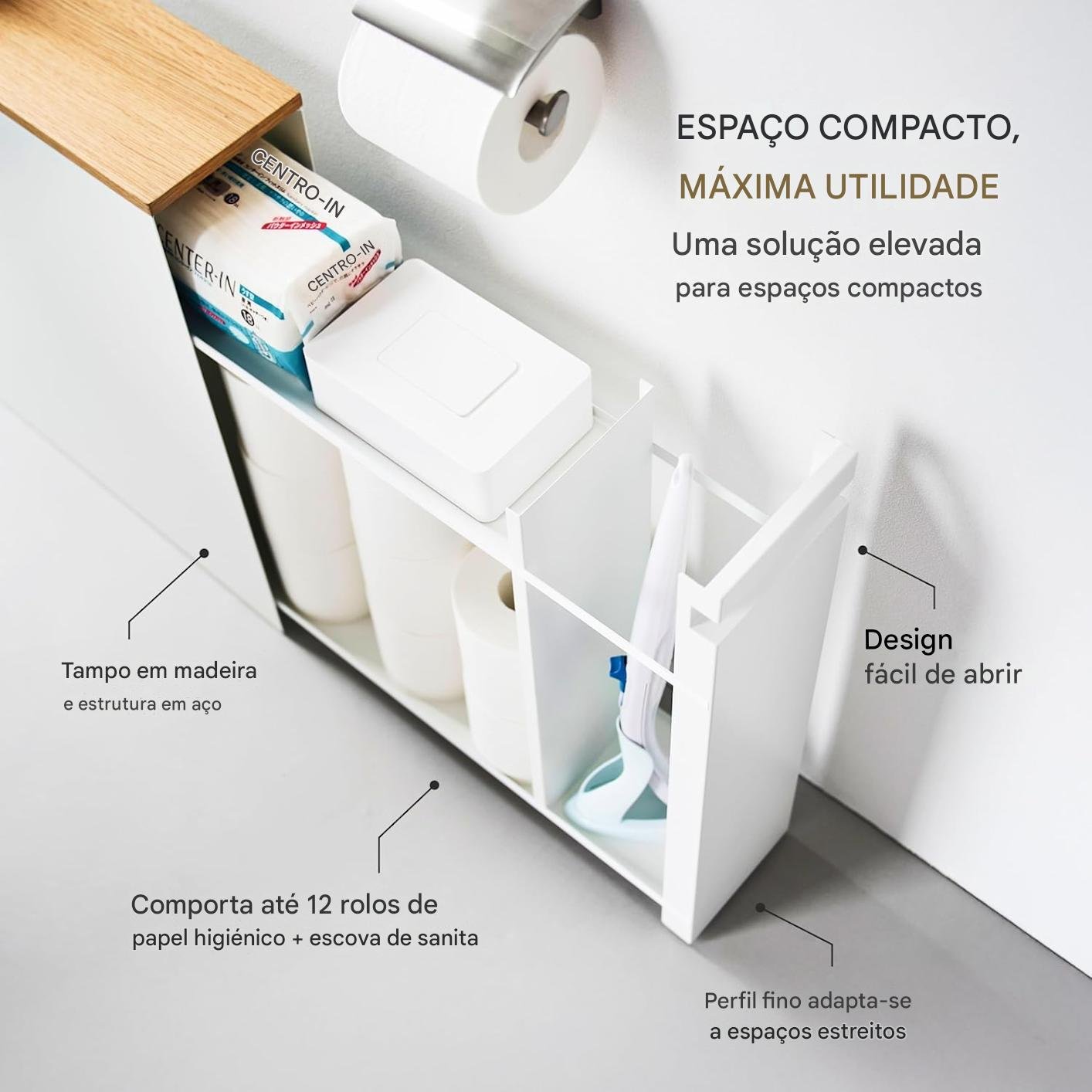 Armário de banheiro compacto com tampo de madeira, organizador de aço para papel higiênico e produtos de limpeza