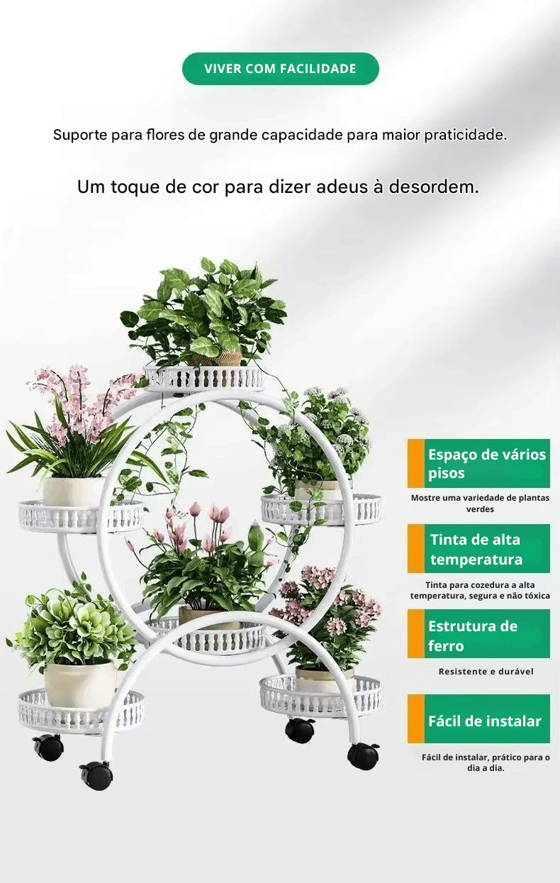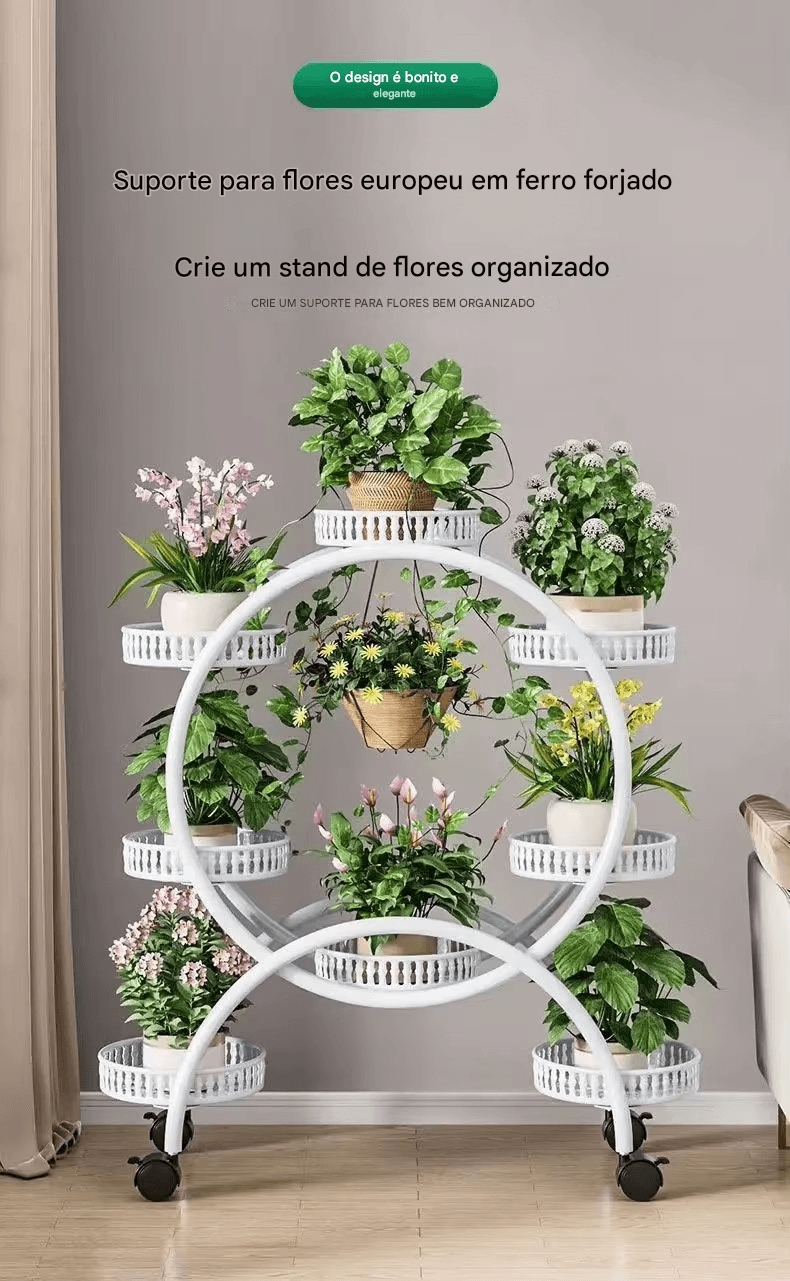 Suporte móvel multicamadas em ferro para vasos de flores – ideal para casa